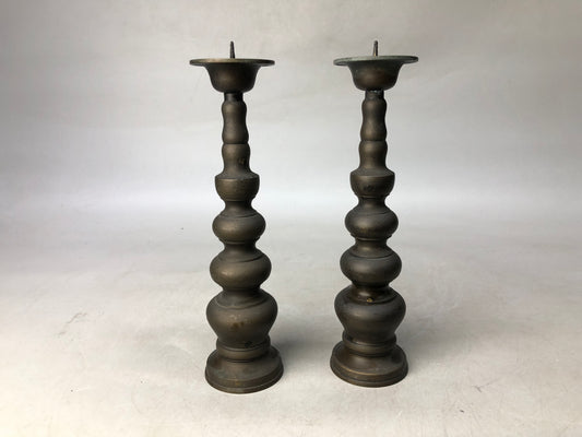 Y8187 Buddhist Altar copper Candlestick candle holder pair Japan antique decor