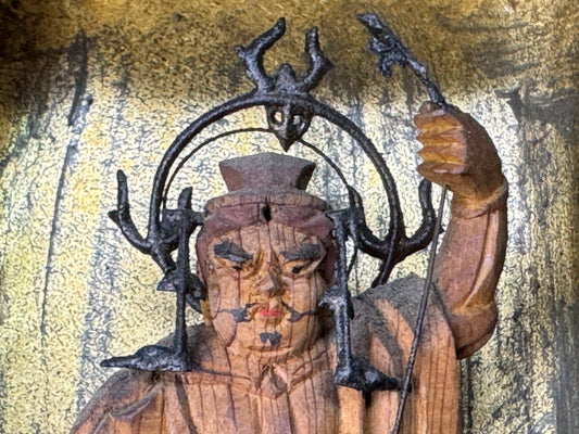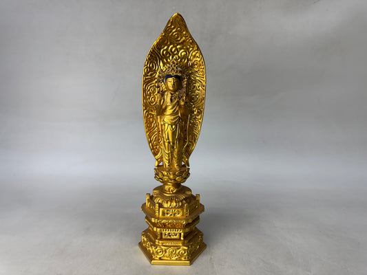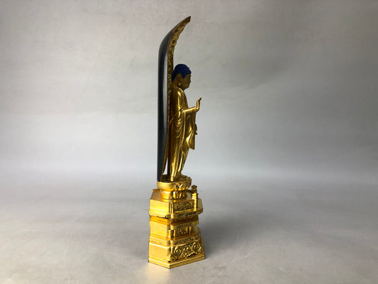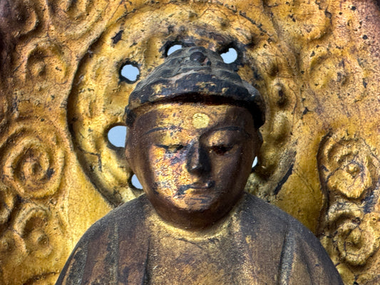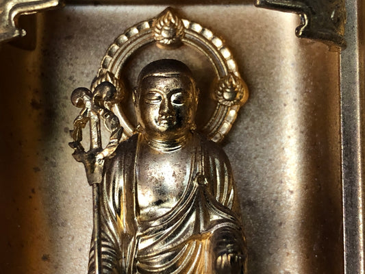 Y9017 OKIMONO Buddhist figurine Nichiren sect gold leaf Japan antique interior