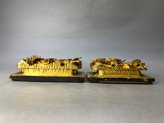 Y8349 Buddhist Altar Equipment small flower stand pair gold paint Japan antique
