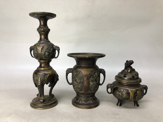 Y8294 Buddhist Altar Equipment Copper 5 implements for worship Japan antique
