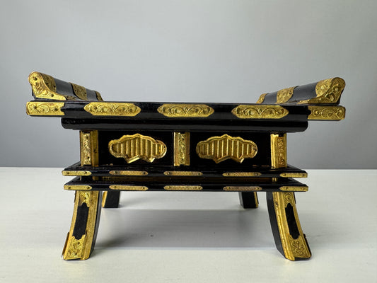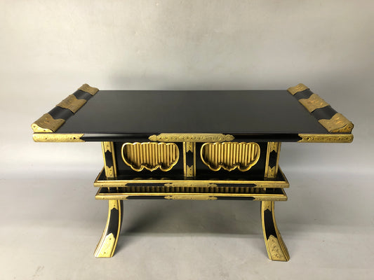 Y7991 Buddhist Altar Equipment Desk Wakasa lacquer top gold leaf Japan antique