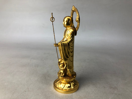 Y8489 STATUE metal small Jizo Bodhisattva figure shrine Japan antique Buddhism