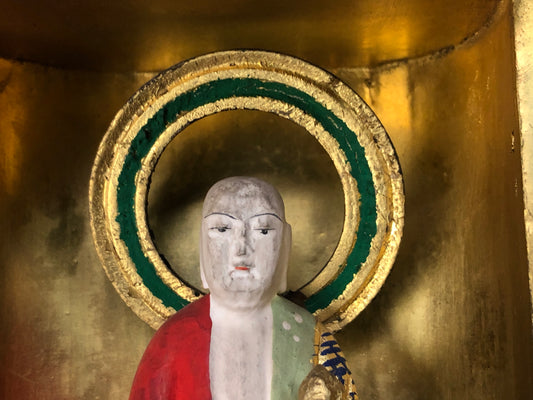 Y8416 STATUE Jizo shrine very colorful Buddhist figurine Japan antique figure