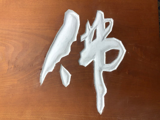 Y8495 SIGNBOARD wall hanging wooden sign Merciful heart signed Japan antique