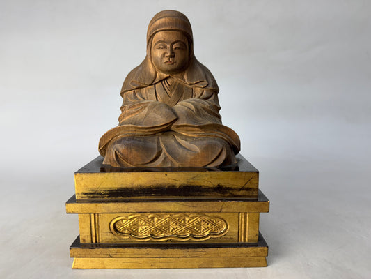 Y8221 STATUE wood carving Nichiren Buddhist figurine Japan antique interior
