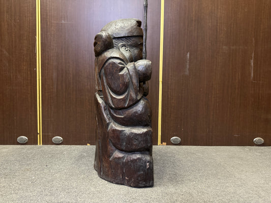 Y8734 STATUE Large Daikoku wood carving figurine Japan antique interior decor