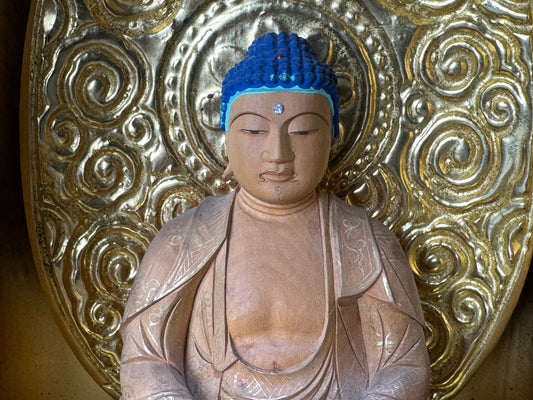 Y9019 STATUE wood carving Amitabha Buddha figurine shrine Japan antique Buddhism