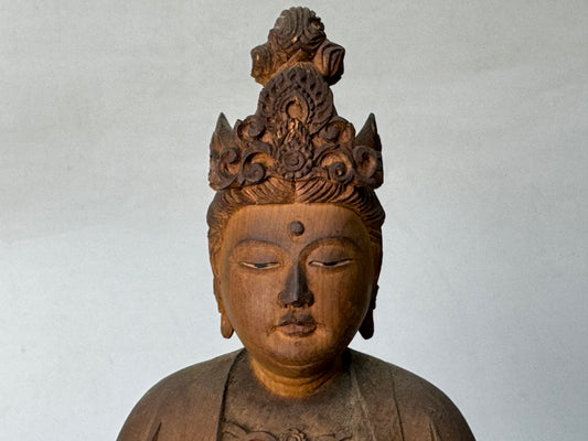 当店では、仏壇用具や仏具を中心に、経机、常花の花瓶、九谷焼や美濃焼の観音像、銅製の香炉、神棚、僧侶の杖、稲荷の狐の像、不動明王の像など、様々なアンティークやヴィンテージの仏教美術作品を多彩に取り揃えております。それぞれが緻密な職人技と宗教的意義を反映した、日本の精神的・芸術的伝統の一部を形成しています。