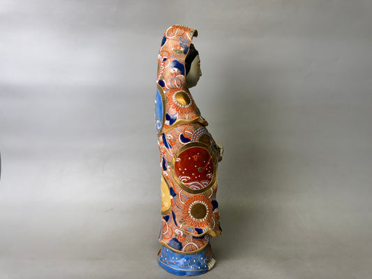 Y9021 STATUE Kutani-ware Kannon Bodhisattva figurine signed Japan antique figure