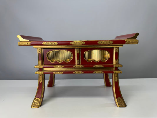 Y9086 Buddhist Altar Equipment Vermilion lacquer table Japan antique Buddhism