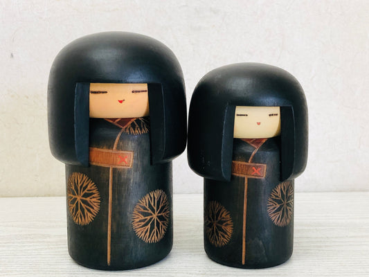 Y3525 NINGYO Kokeshi doll figure big small pair signed Japanese vintage antique