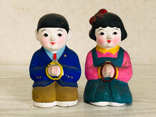Y3580 NINGYO Clay Doll male female pair praying Japanese vintage antique Japan