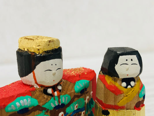 Y3590 HINA DOLL Hinamatsuri Festival figure one-knife carving box Japan antique