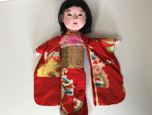 Y3900 NINGYO Ichimatsu Doll girl flower kimono Japan vintage figure antique