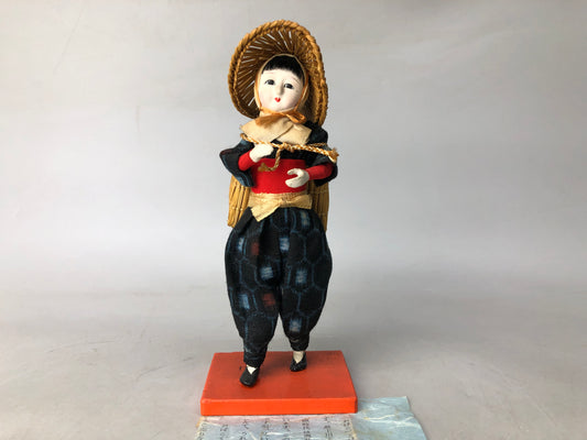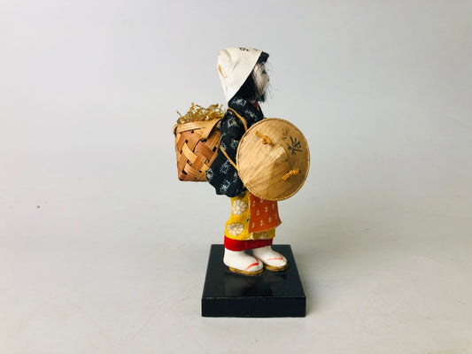 Y8104 NINGYO Japanese doll male bamboo basket Japan antique interior statue