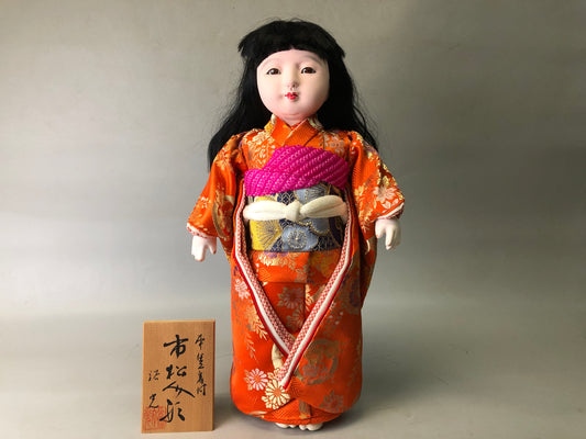 Y7714 NINGYO Ichimatsu doll girl signed box Japan antique figure interior decor