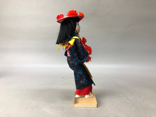 Y8114 NINGYO Japanese doll girl Hanagasa flower hat Japan antique interior decor