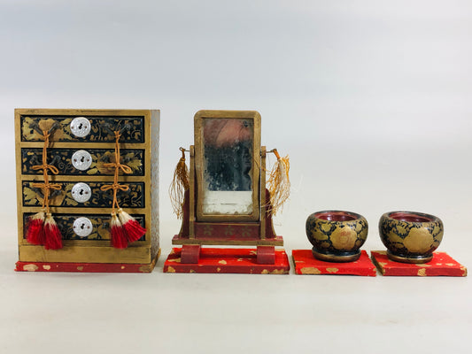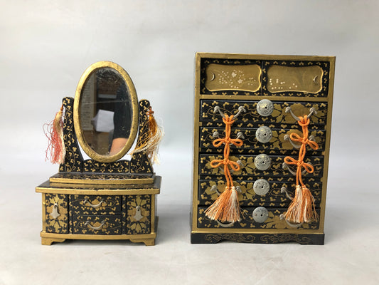 Y8148 HINA DOLL Doll's Festival Makie miniature Mirror Chest box Japan antique