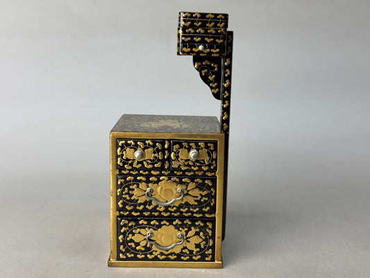 Y8669 HINA DOLL Doll's Festival Makie miniature sewing box chest Japan antique