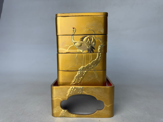 Y8932 HINA DOLL Doll's Festival Gold lacquer multi-tiered box Japan antique