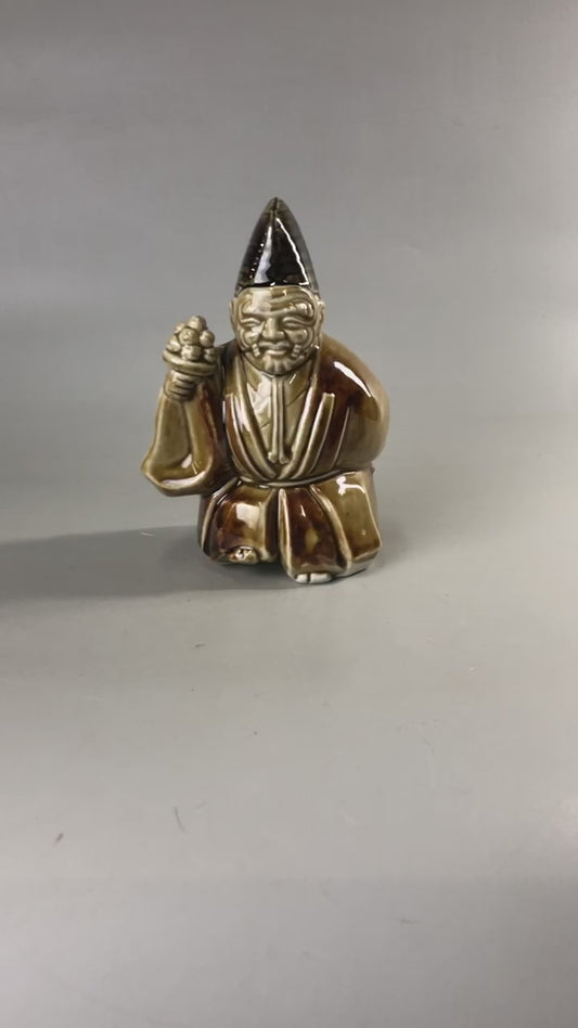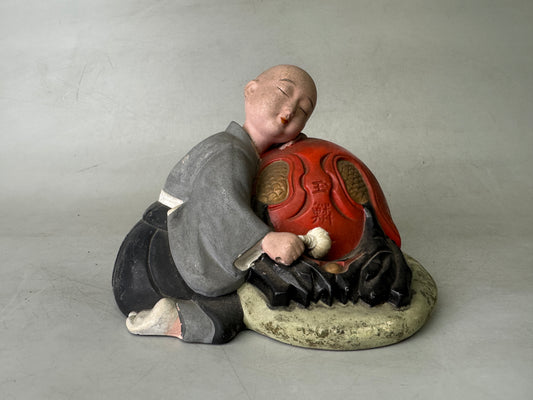 Y9023 OKIMONO ceramic Dozing Monk figurine Mokugyo Japan antique interior figure