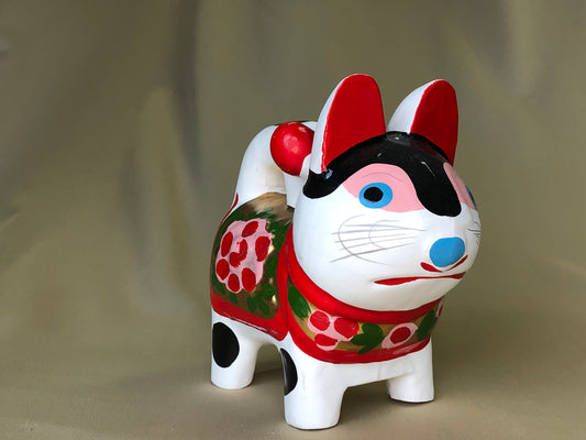 Y4185 OKIMONO papier mache Guardian dog figure Japan antique vintage decor