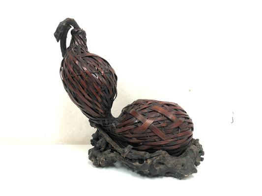 Y4536 Bamboo Woven Basket flower vase decor interior Japan antique ikebana kabin