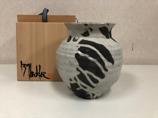 Y4067 FLOWER VASE Seto-ware signed box Japan ikebana interior antique home decor