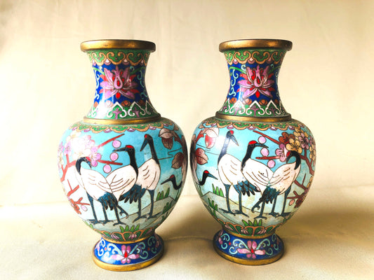 Y4231 FLOWER VASE Chinese Cloisonne pair China ikebana decor antique interior