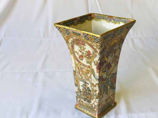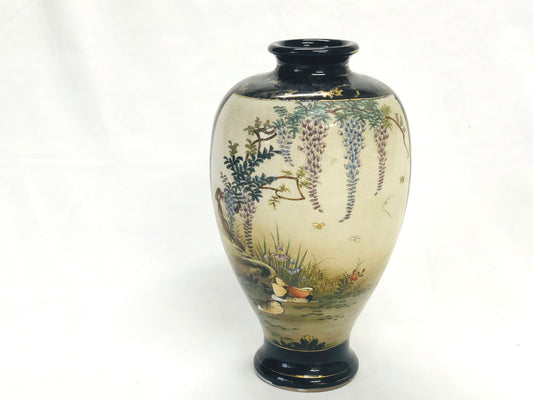 Y5056 FLOWER VASE Satsuma-ware Hideyoshi box Japan ikebana antique interior