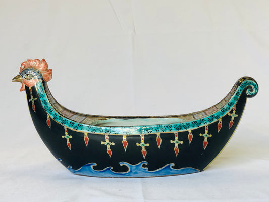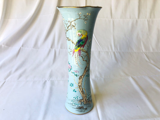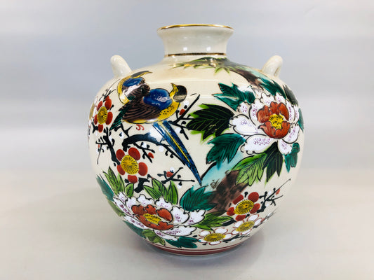 Y4596 FLOWER VASE Kutani-ware bird ship Japan ikebana antique interior decor