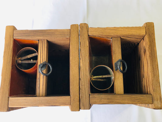 Y4485 FLOWER VASE wood well bucket pair Japan ikebana antique interior decor