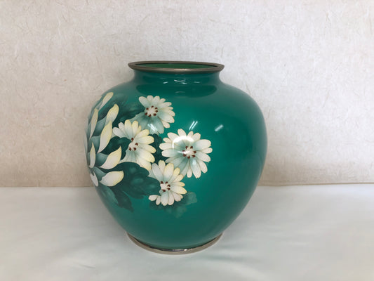 Y5838 VASE Cloisonne green flower pattern Japan ikebana antique interior decor