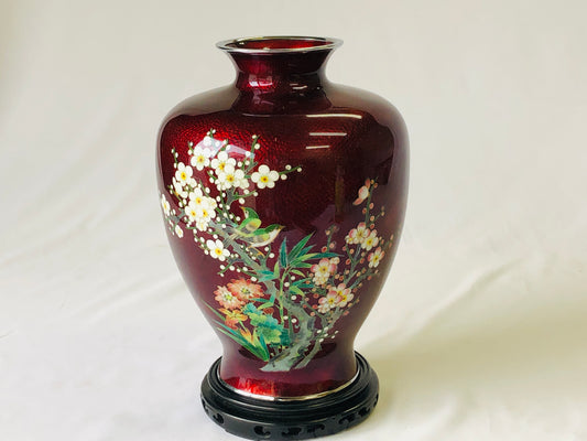 Y4775 FLOWER VASE Cloisonne red bird box Japan ikebana antique interior decor