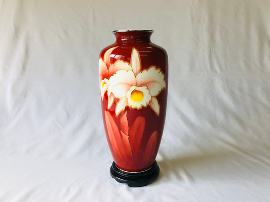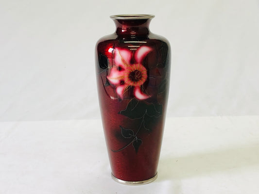 Y5117 FLOWER VASE Ando Cloisonne red flower signed Japan ikebana antique decor