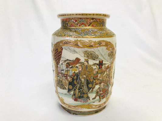 Y4389 FLOWER VASE Satsuma-ware samurai warrior picture Japan ikebana antique