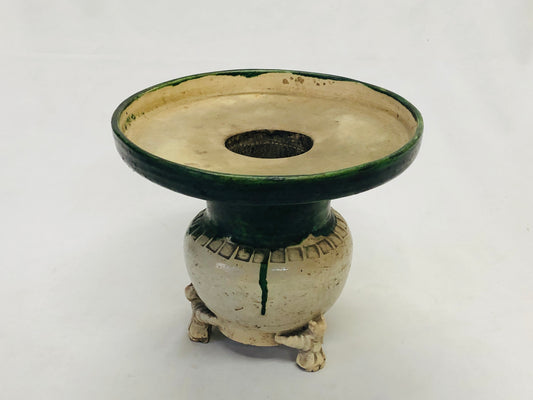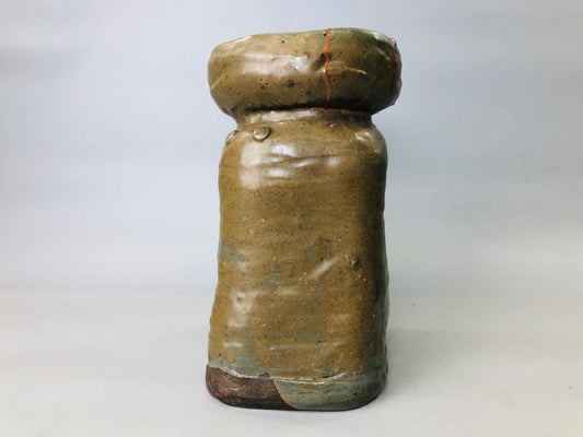 Y5058 FLOWER VASE Raku-ware USUBATA Oribe glaze Japan ikebana antique interior