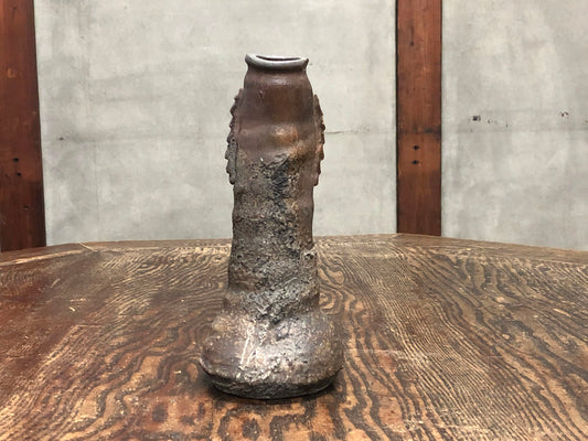 Y4075 FLOWER VASE Bizen-ware wall hanging signed Japan ikebana decor antique