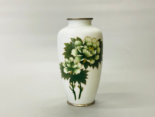 Y5288 FLOWER VASE Cloisonne white floral design Japan ikebana antique interior