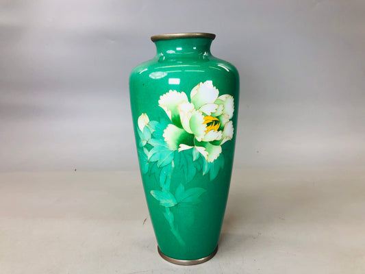 Y4693 FLOWER VASE Cloisonne green peony box Japan ikebana antique interior