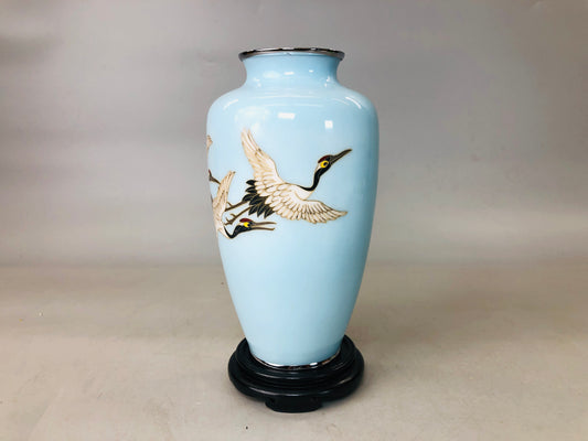 Y5919 FLOWER VASE Cloisonne Crane base signed box Japan ikebana antique interior