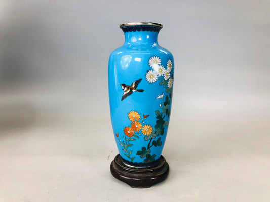 Y5963 FLOWER VASE Cloisonne flower bird small signed box Japan ikebana antique