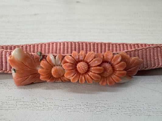 Y8972 OBIDOME Coral sash clip brooch flower carving Japan antique kimono fashion