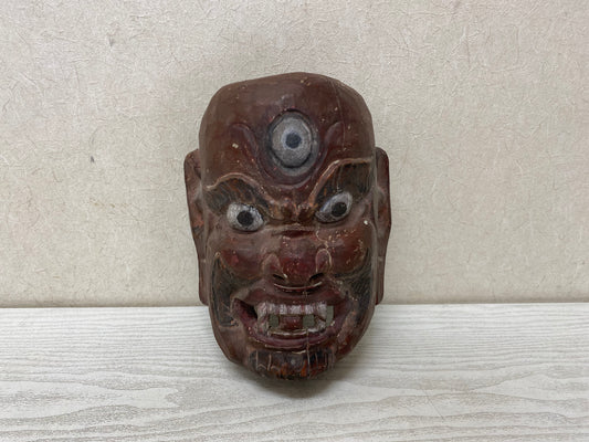 Y2864 NOH MASK Three-eyed wood carving omen Japan vintage antique traditional