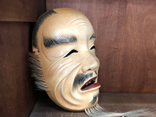 Y3600 NOH MASK Ikkaku Sennin wood carving signed Japan antique omen vintage