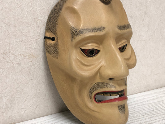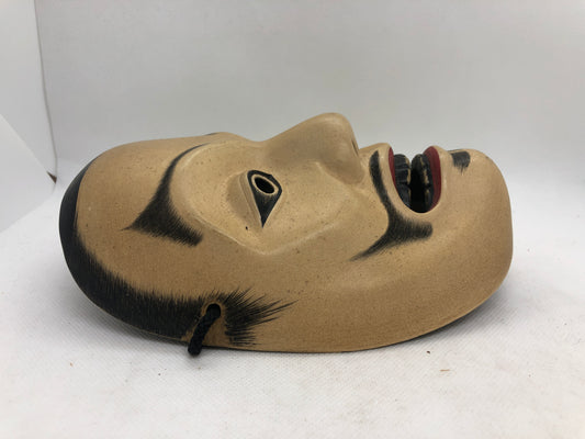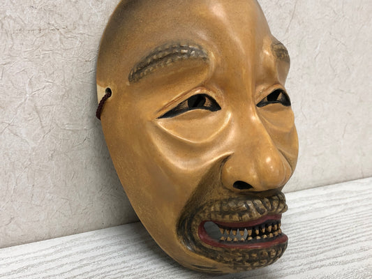 Y3008 NOH MASK wood carving Smiling face Japan antique dance drama omen men