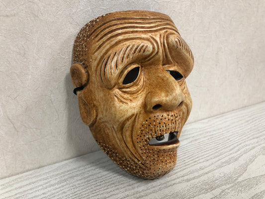 Y2990 NOH MASK wood carving Waraijyo smile old man Japan antique dance drama