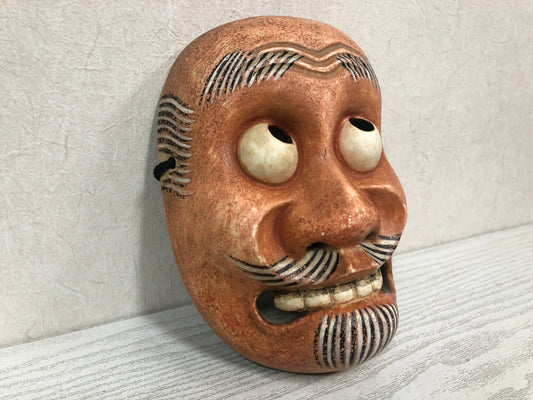 Y3002 NOH MASK wood carving Ookashiki Japan antique dance drama omen men