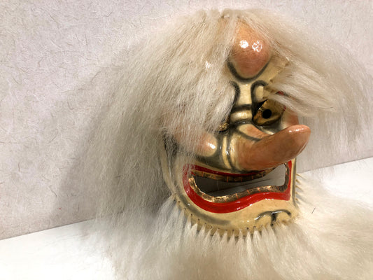 Y3965 MASK papier-mache white Tengu yokai Japanese antique omen vintage Japan