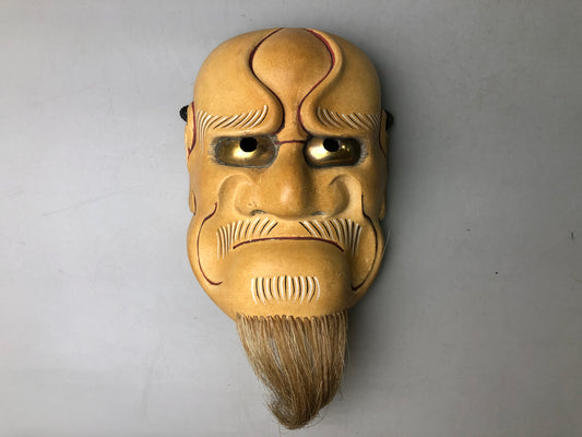 Y8915 NOH MASK wood carving Sankojo signed Japan antique omen men dance drama